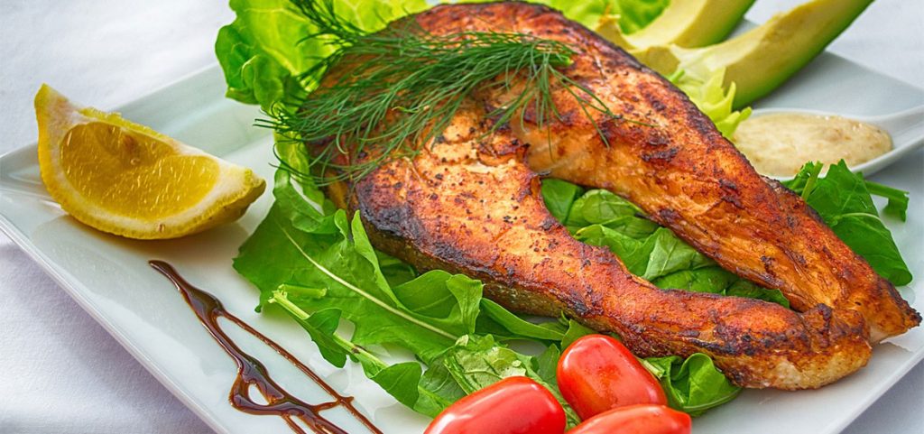 Season salmon fillets with lemon pepper, garlic powder, and salt.